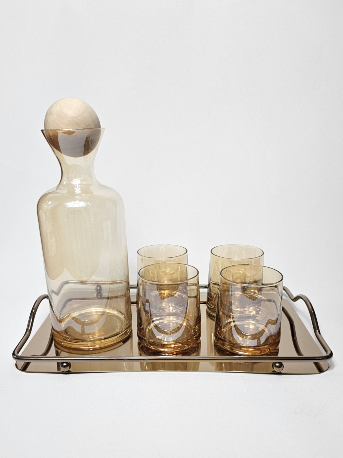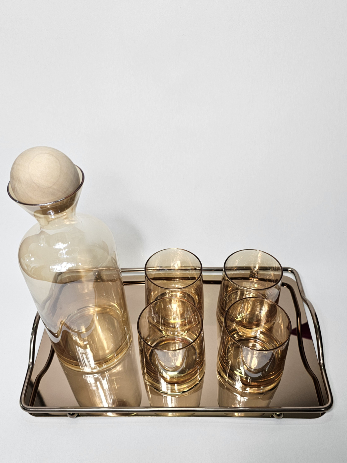 Eleganță și rafinament în fiecare detaliu! Setul CasaLina conține o carafă din sticlă colorată, cu un design minimalist, completată de un dop din lemn natural și 4 pahare asortate. Este alegerea perfectă pentru servirea băuturilor cu stil, fie că vorbim de apă, limonadă, cocktailuri sau băuturi fine.