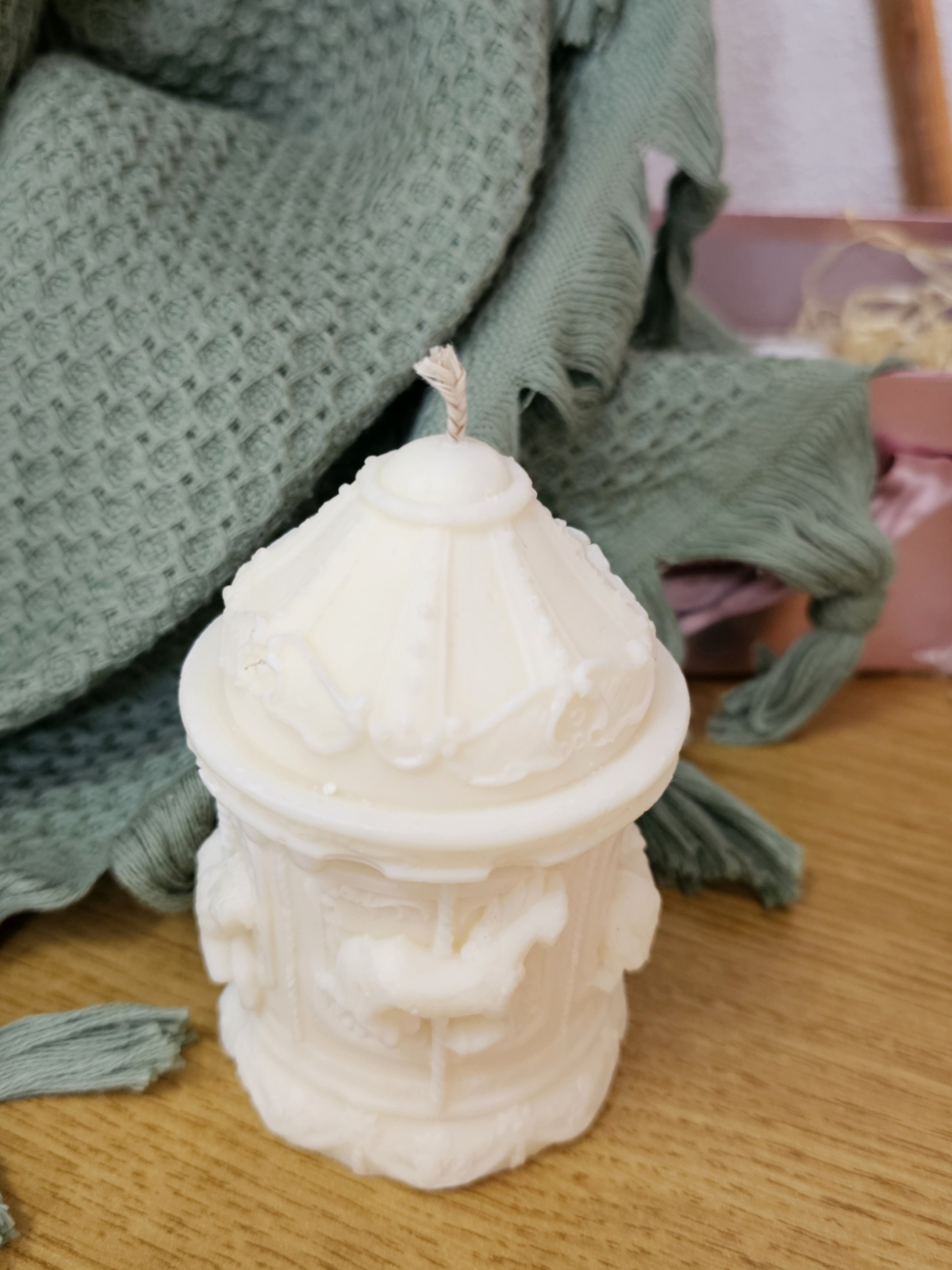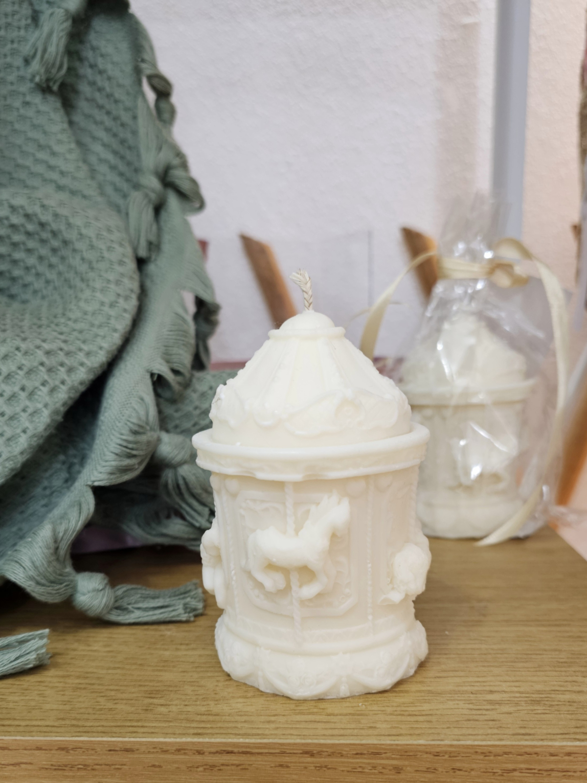 Transformă-ți casa într-un spațiu plin de magie și eleganță cu lumânarea decorativă marca CasaLina, turnată manual din ceară naturală. Designul său unic, inspirat de forma unui carusel cu detalii delicate, o face nu doar o sursă de lumină caldă și liniștitoare, ci și o piesă de decor deosebită.