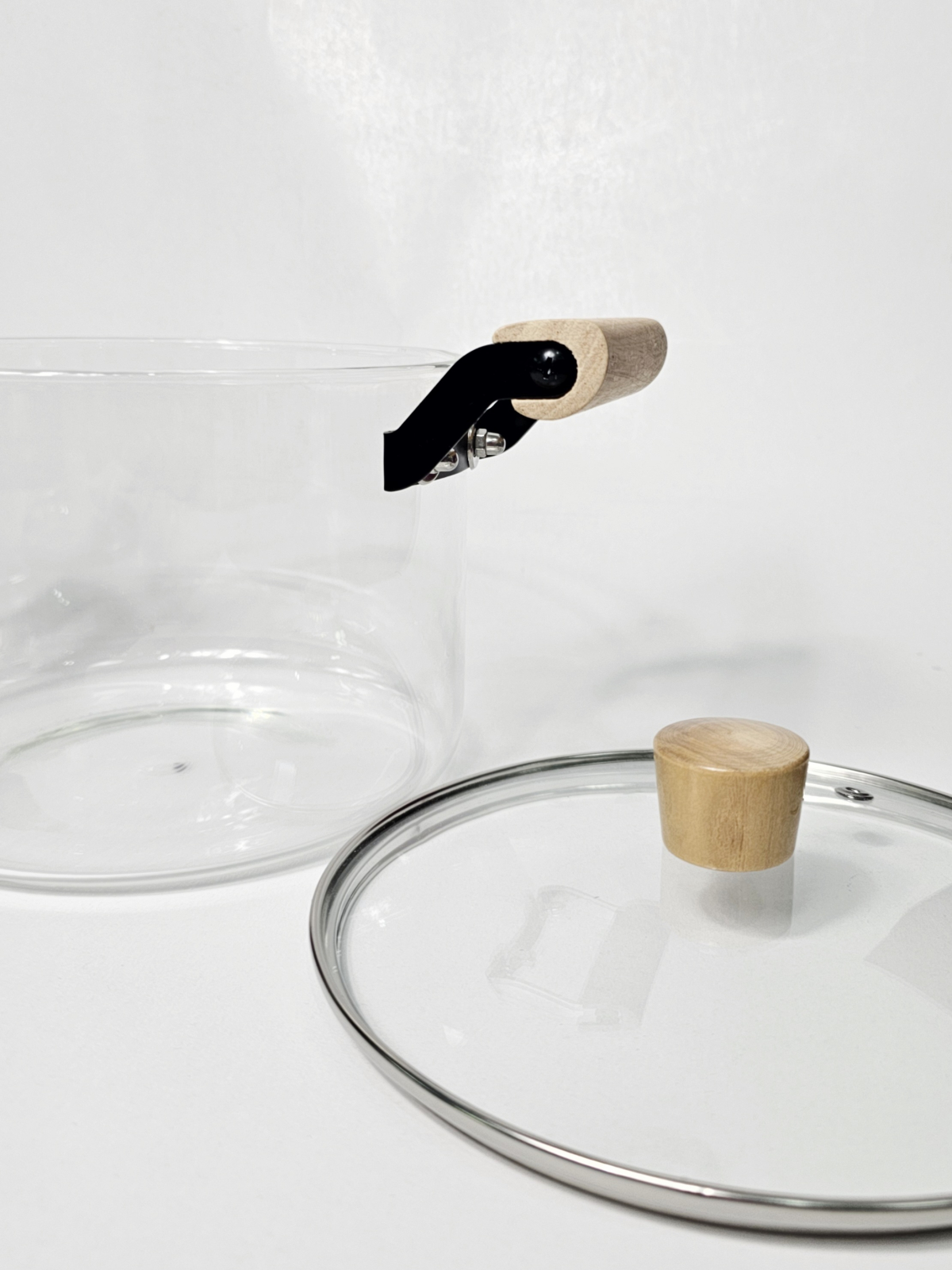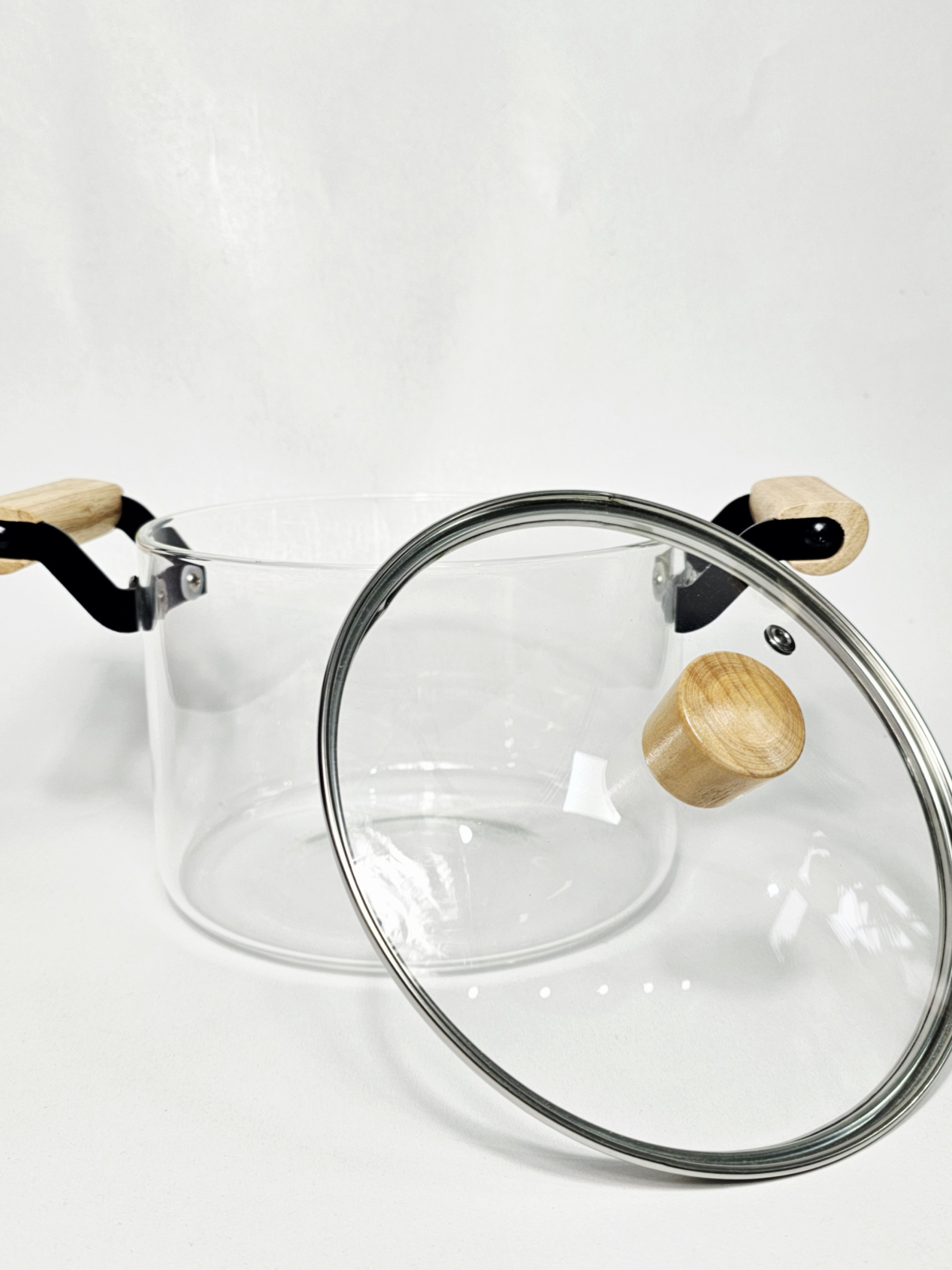 Oala de 4.5 L este realizaă din sticlă borosilicată transparentă, rezistentă la temperaturi înalte și șocuri termice, fiind ideală pentru un gătit sănătos și estetic.