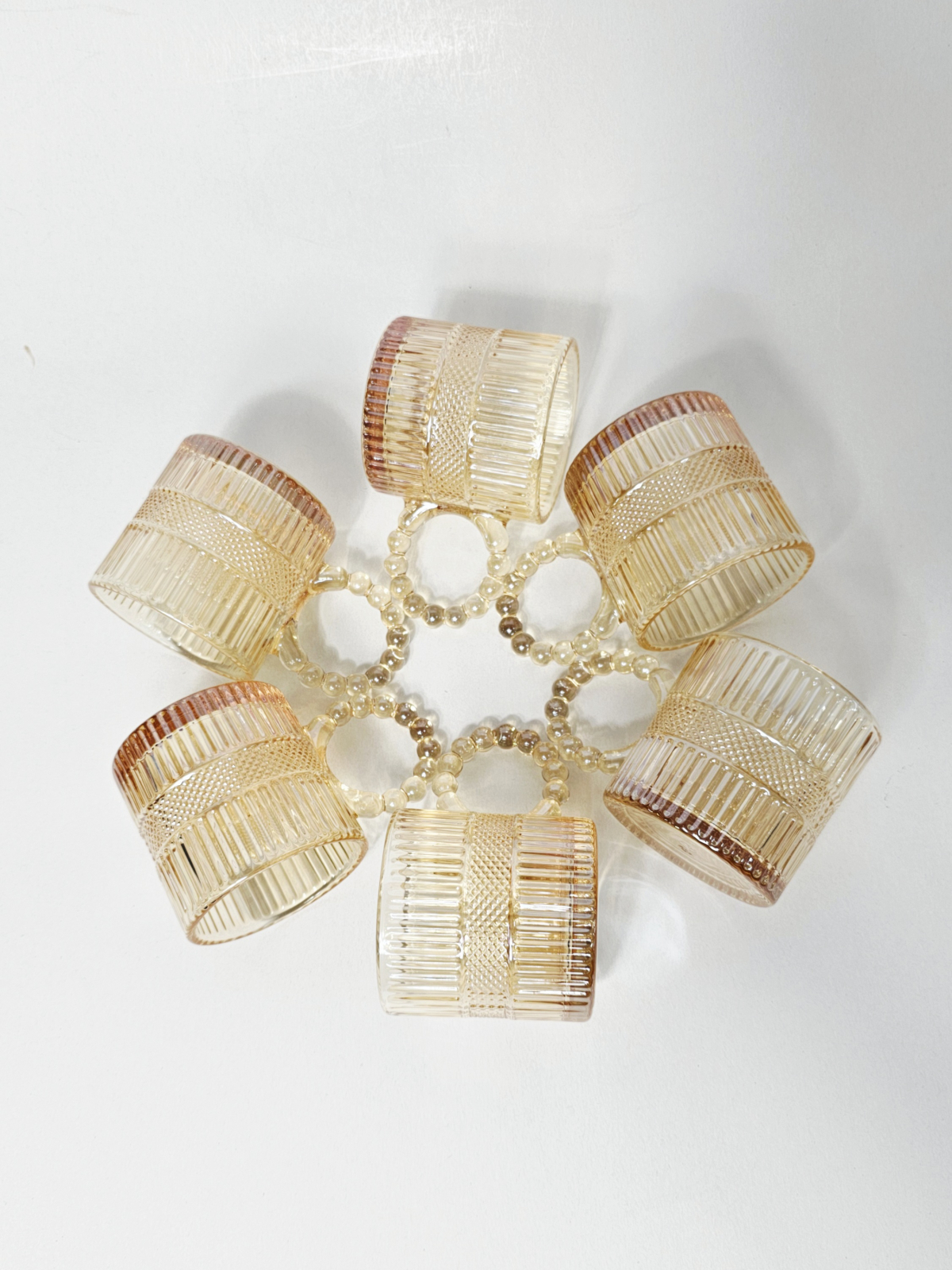 Cele 6 pahare din sticlă borosilicată impresionează prin designul texturat și toarta decorativă tip perlă, oferind un aspect unic și sofisticat.