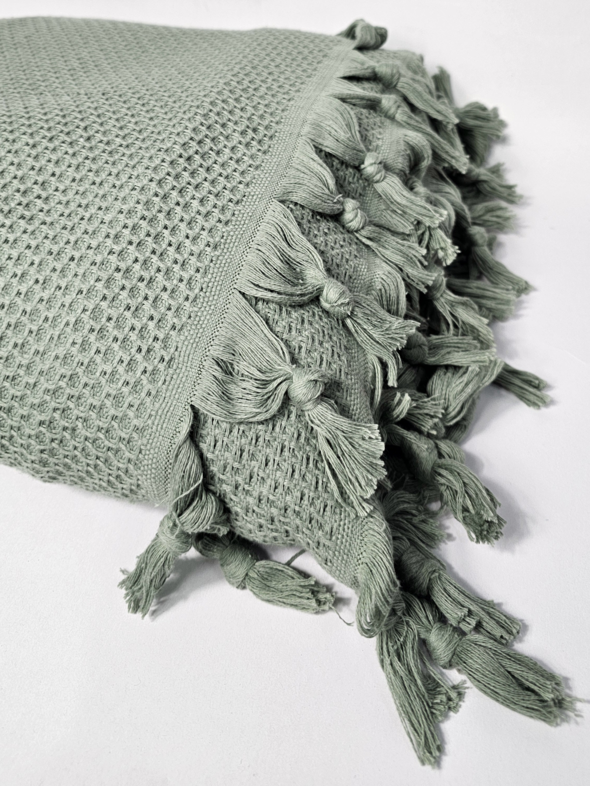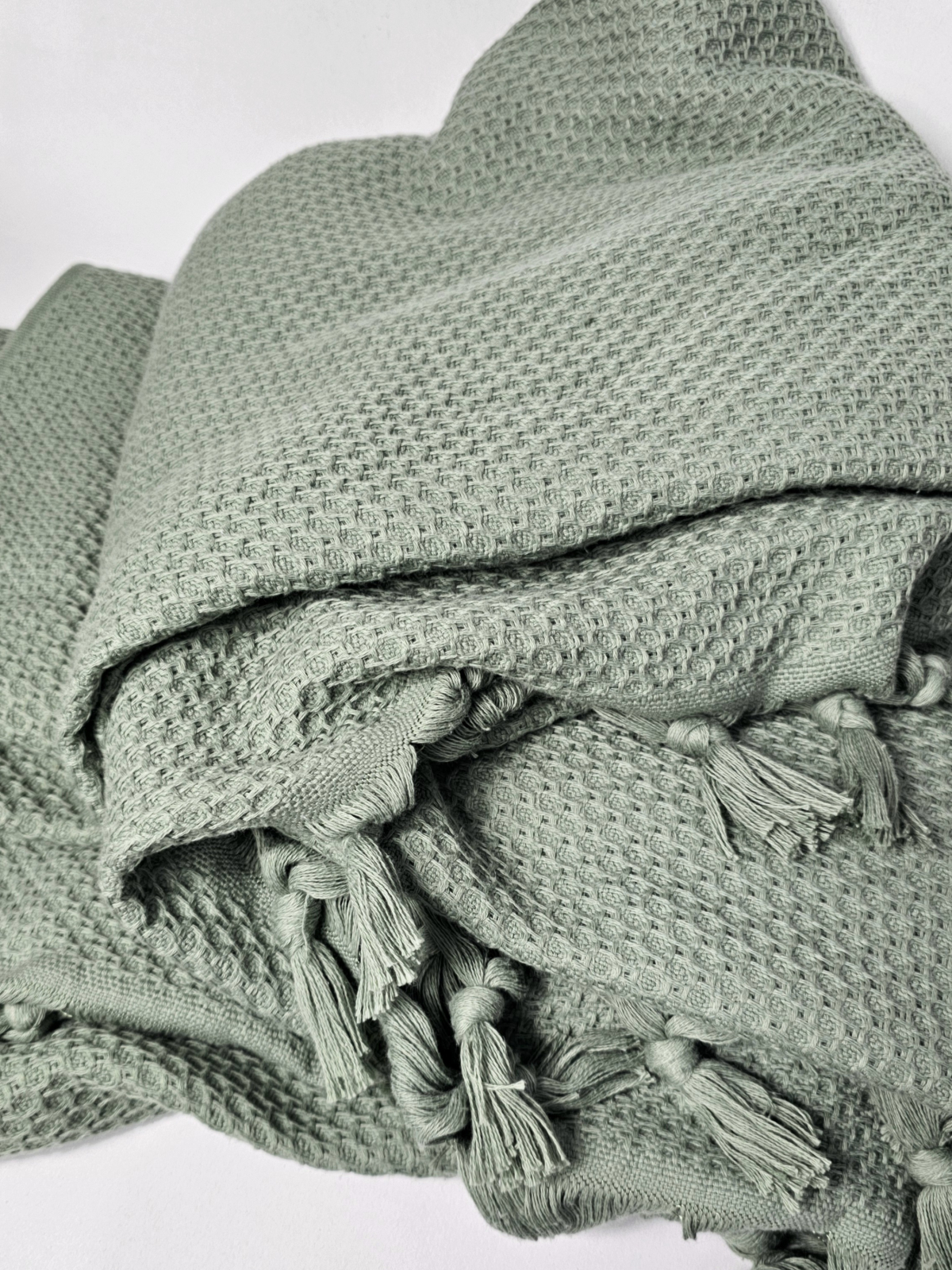 Adaugă un strop de prospețime și rafinament casei tale cu pătură din bumbac, într-o nuanță delicată de mint.